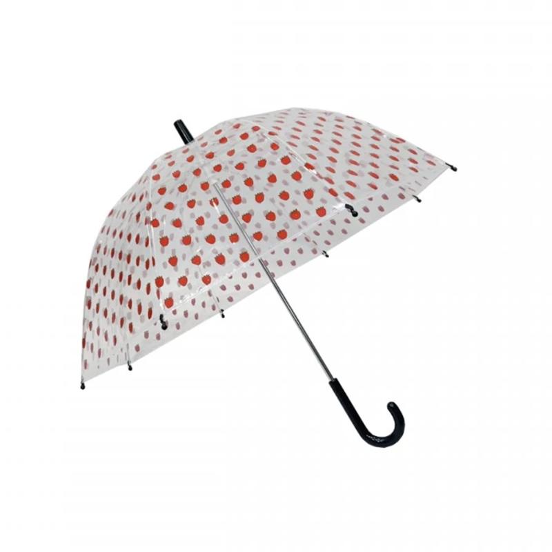 Прозрачный купол с рисунками клубники — ребенок видит дорогу и все вокруг. Это важно для безопасности на улице. Ручка удобная, не скользит в руке. Зонт закрывается на кнопку, ребенок справится без помощи взрослых. Легкий вес — рука не устает даже после долгой прогулки под дождем. Прозрачный материал прочный и не мутнеет со временем. Яркие ягоды клубники поднимают настроение в пасмурную погоду. Отличный выбор для весенних и летних дождей.