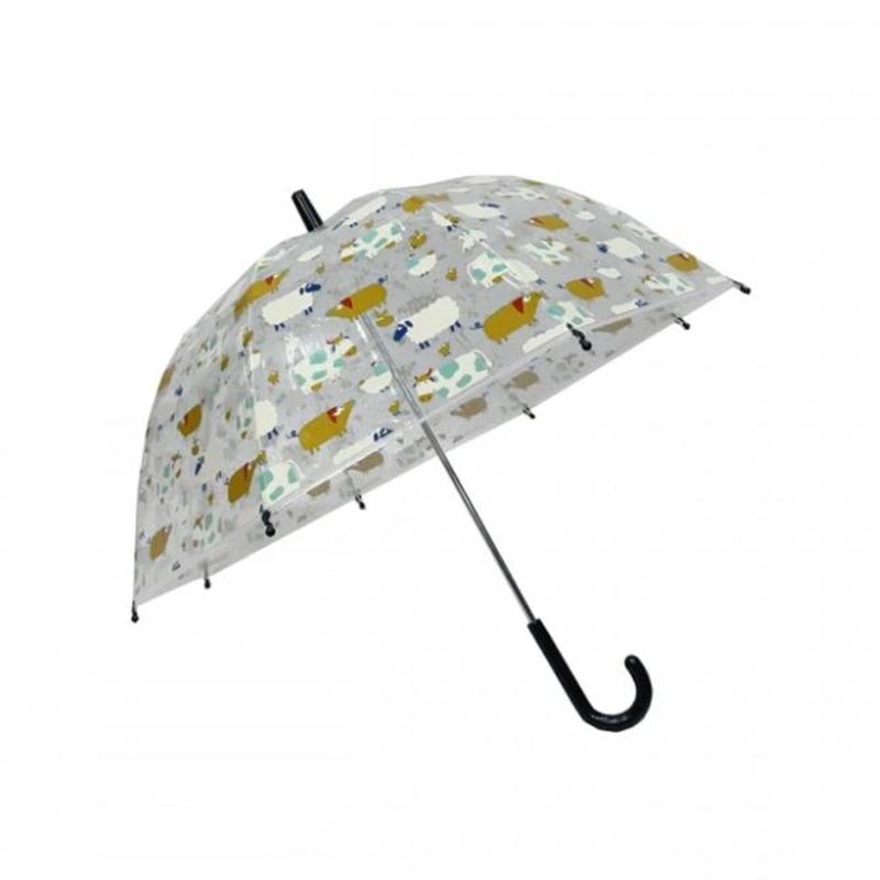 Прозрачный купол с рисунками животных с фермы — ребенок видит дорогу и все вокруг, а не только зонт над головой. Это безопаснее на улице. На куполе нарисованы самые популярные и узнаваемые обитатели фермы. Ручка удобная, рассчитана на детскую руку. Зонт закрывается на кнопку — ребенок легко справится сам. Легкий по весу, не устает рука во время долгой прогулки. Прозрачный материал прочный, не мутнеет со временем. Отличный вариант для дождливой погоды.